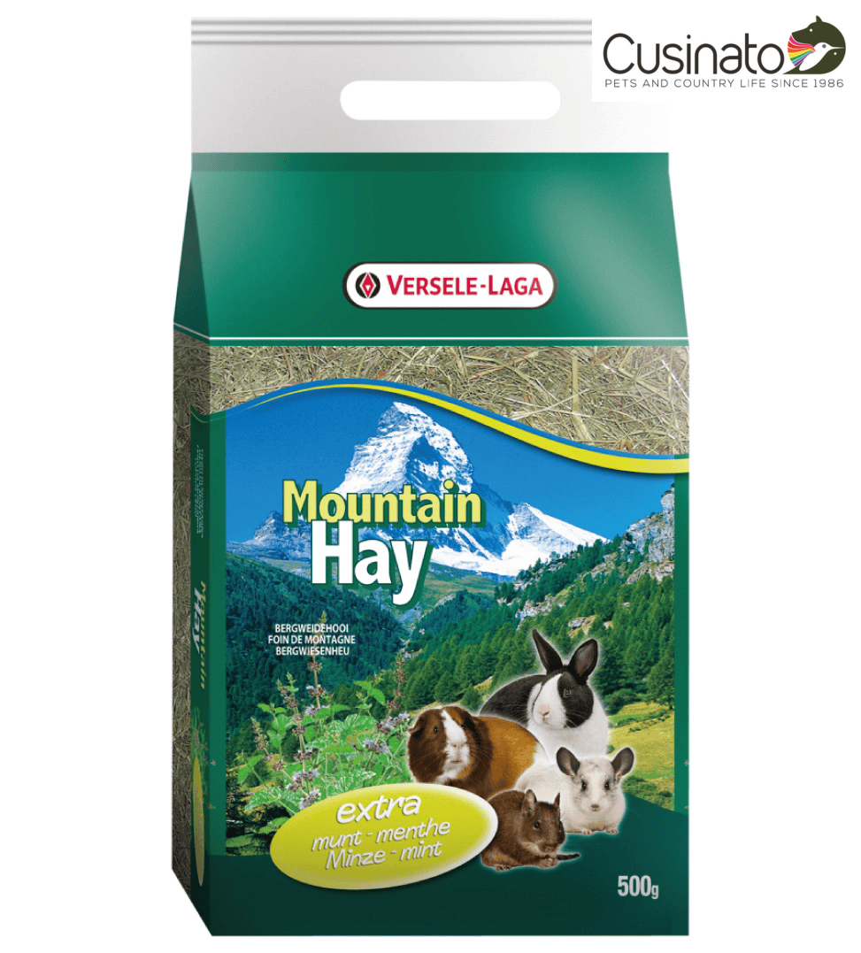 Fieno di montagna con foglie di menta, per conigli e roditori.