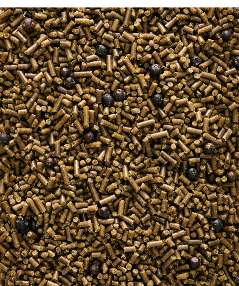 Mangime completo e bilanciato in pellet , arricchito con bacche di ginepro.