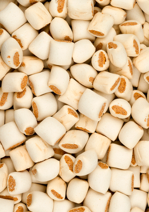 Composizione: Cereali, derivati animali, oli e grassi vegetali, glucosio e sostanze minerali. Coloranti consentiti dall’UE.