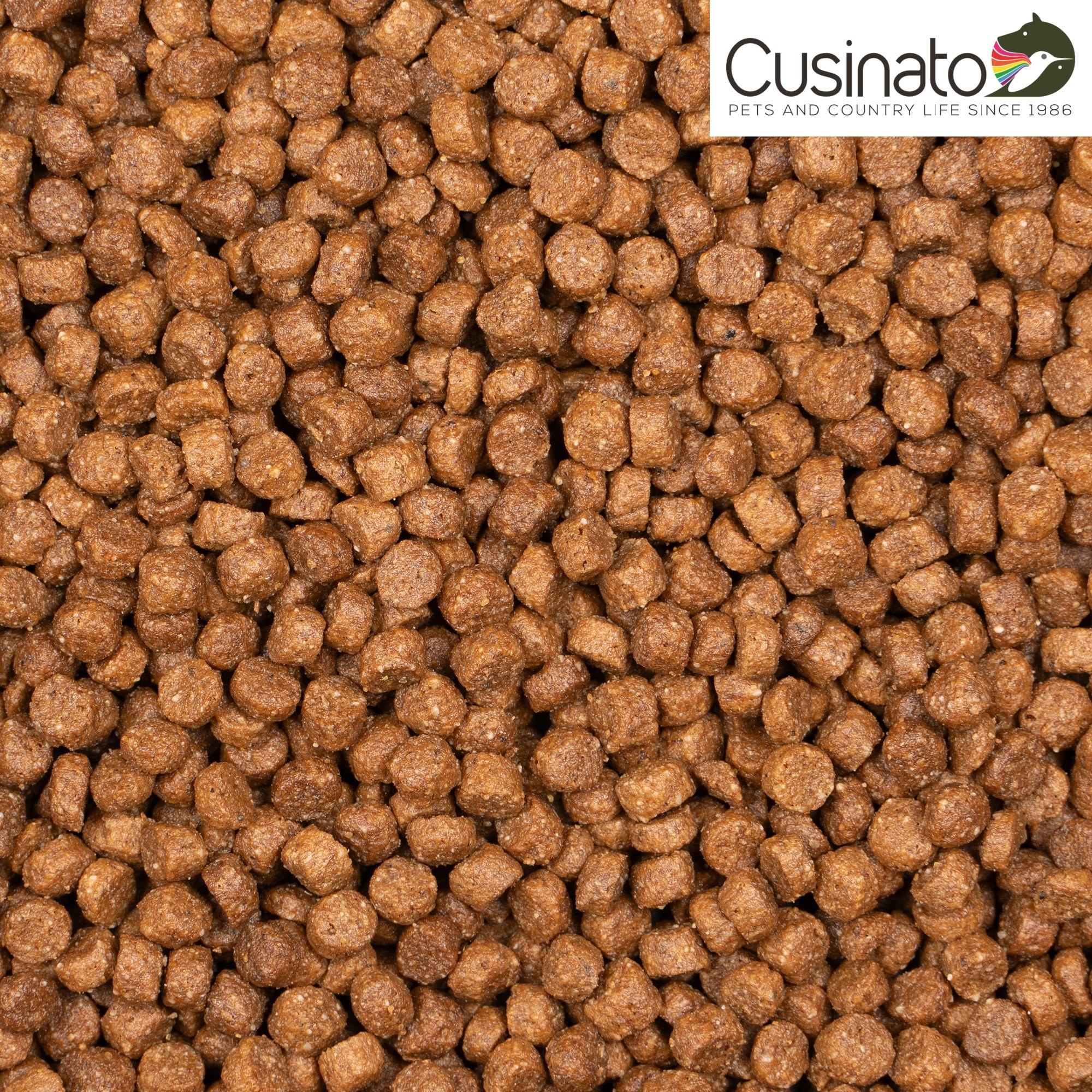 Formulato senza mais o grano, contiene una miscela unica di piante essiccate, naturalmente ricche di antiossidanti, integrate con prebiotici e β-glucani, mentre l’olio di pesce promuove la salute della pelle e del pelo.