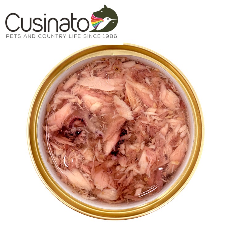 Alimento complementare grainfree per gatti adulti, in gelatina, a base di Tonno e Polpo, senza conservanti, coloranti e aromatizzanti.